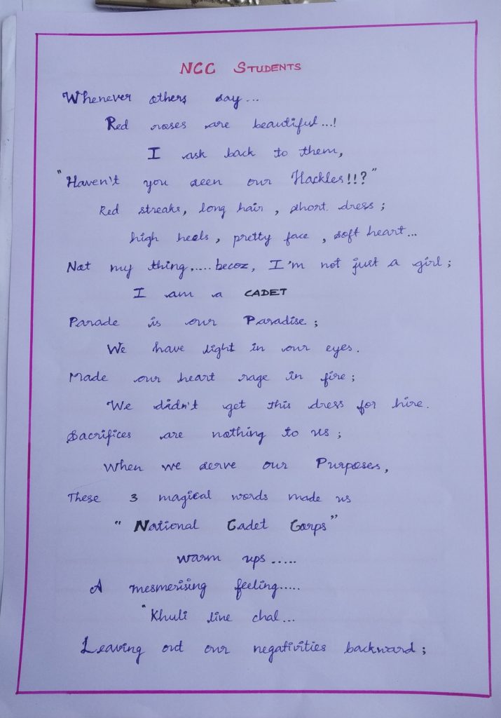 Cdt.Bhavadharani had written poem about NCC in the events conducted by AC & RI , madurai