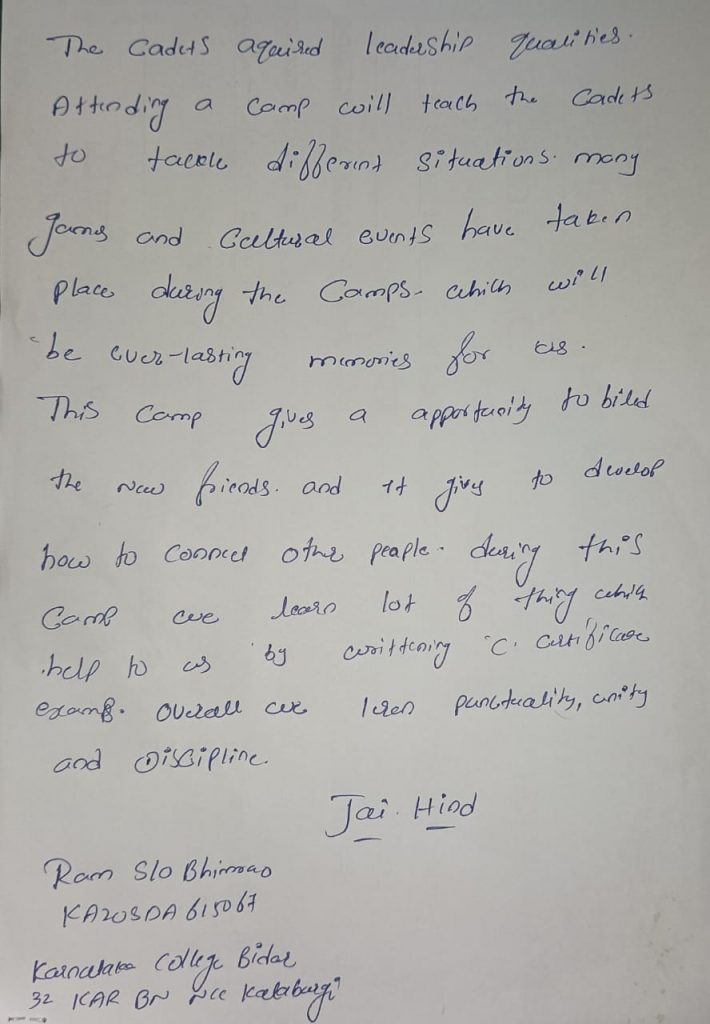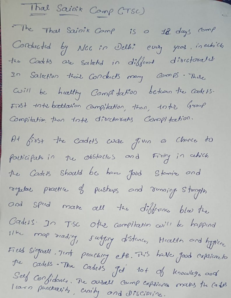 ABOUT CAMP EXPERIENCE TRAINING FOR ALL NCC CADETS