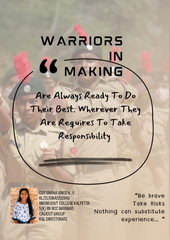 Rank: LCPL Name: Abhinav.T Cadet No : KL/21/SDA/202921 College:NMSM GOVT college Kalpetta 5K(BN) NCC Wayanad Calicut Group K & L Directorates