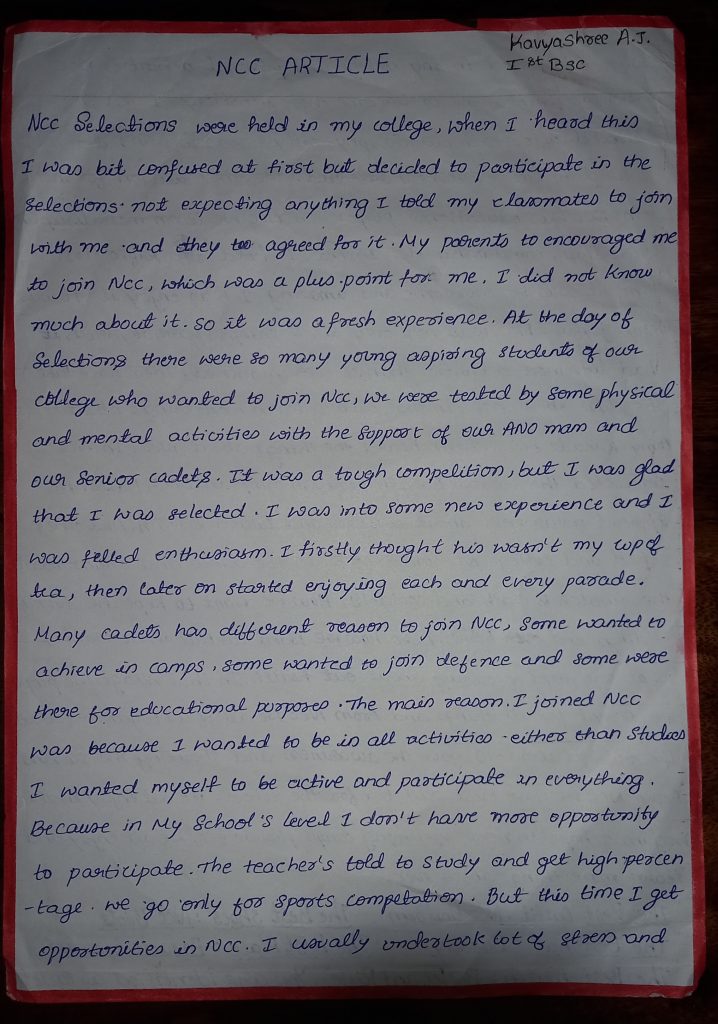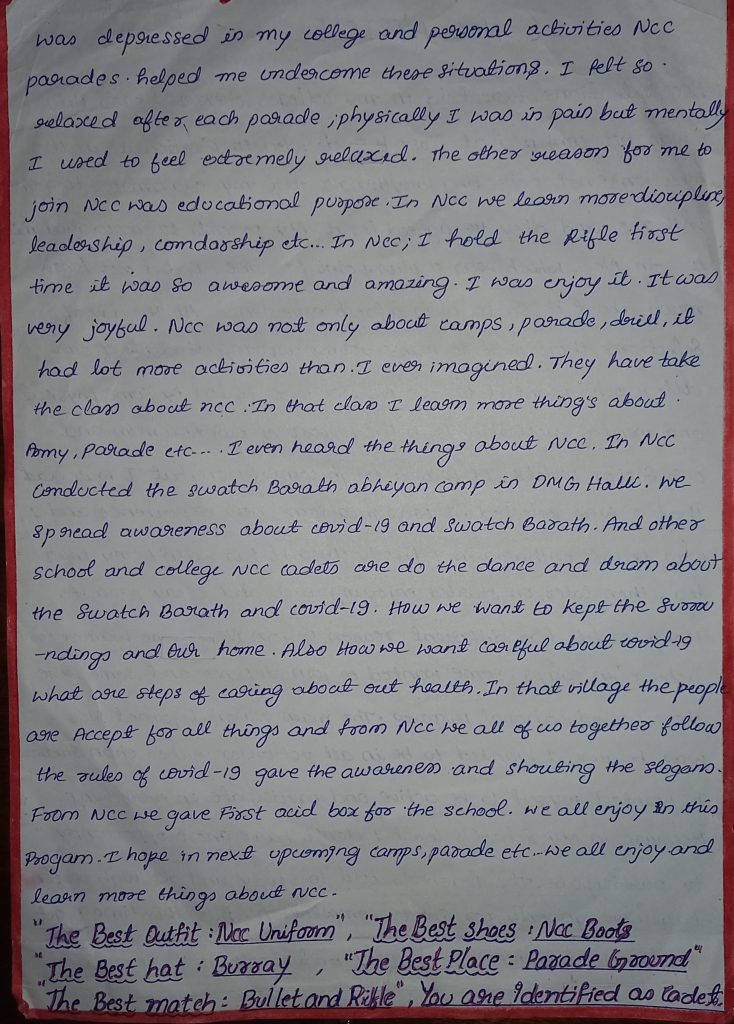 MP/21/SW A/115755 Sgt Ayushi tiwari Govt Girls college vidisha,14MP BN VIDISHA