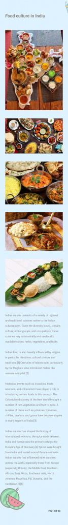 TN20SWA833214 , Cdt.N.Subhashri , 12(TN)BN ,NCC , Sri Sarada College For Women (Autonomous) , Salem – 16 . Food culture in India