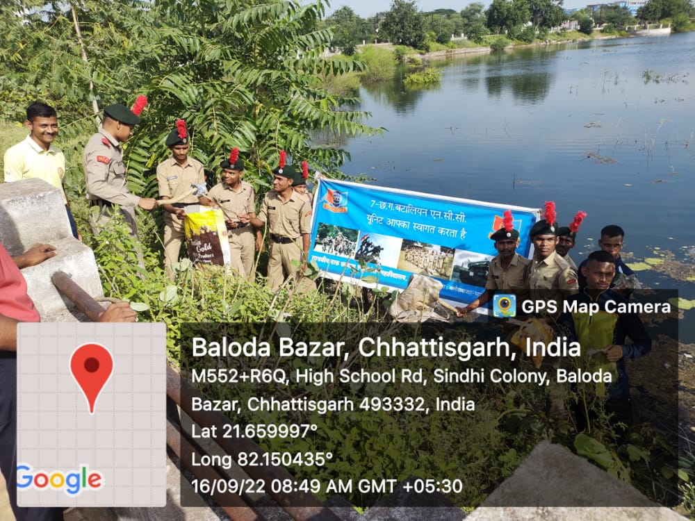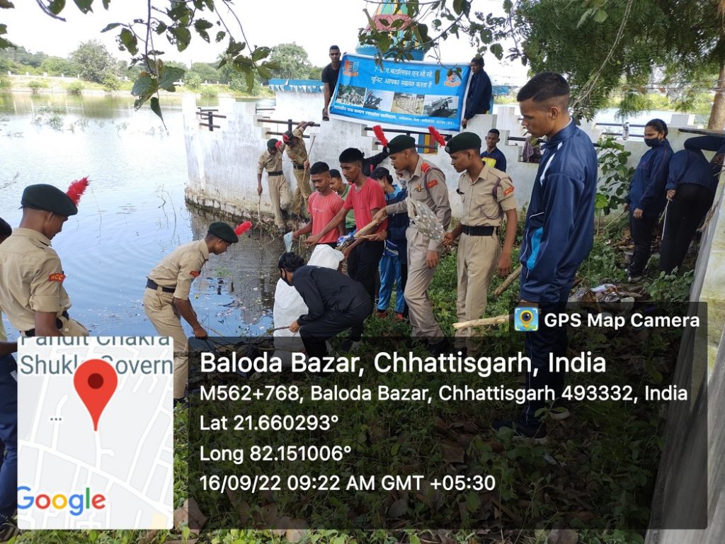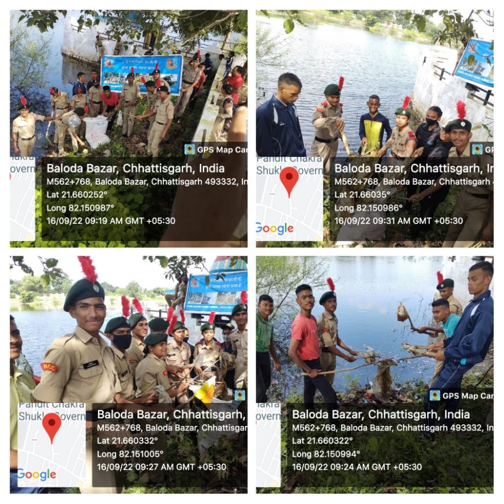 Aj dk college baloda bazar ke cadets ne Baloda bazar ke Indira colony me sthit vivekanand talab me Punit Sagar abhiyan ke tahat swachchhta abhiyan chlaya