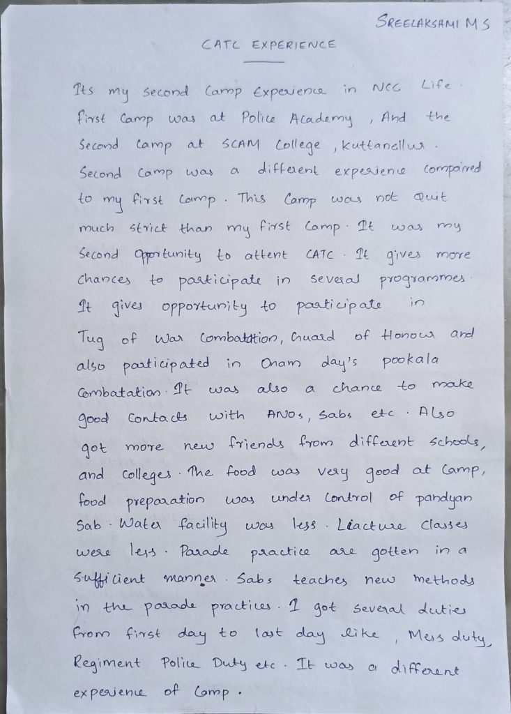KL21SWA266349 CDT SREELAKSHMI M S SREEKRISHNA COLLEGE GURUVAYUR NCC UNIT 5TH COY