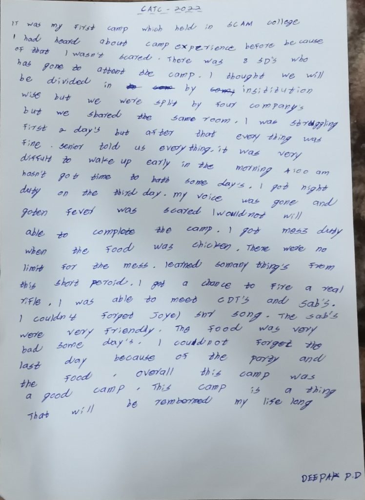 ATHULY DAS KL/21/SWA/185227 RSM SNDP YOGAM COLLEGE 30(K)BN NCC CALICUT GROUP KERALA& LAKSHADWEEP DTE