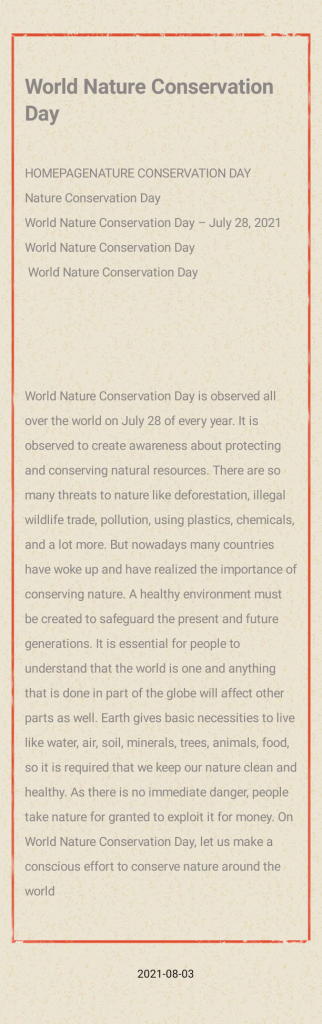 World Nature conservation day