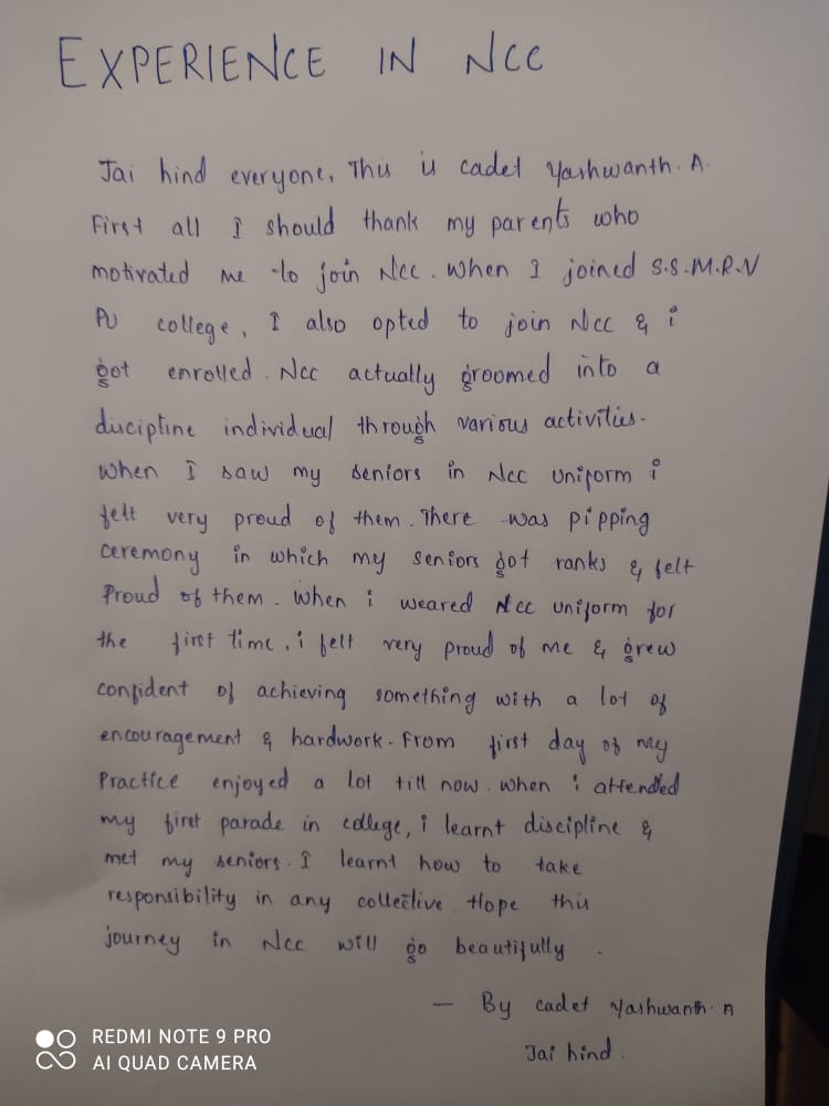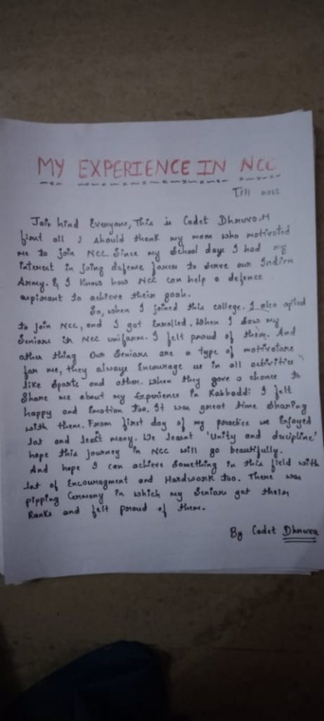 100 UP BN NCC Cedet :- Shivam Regimental number :- UP20SDA716387 School name :- udai Pratap inter College ( Varanasi)