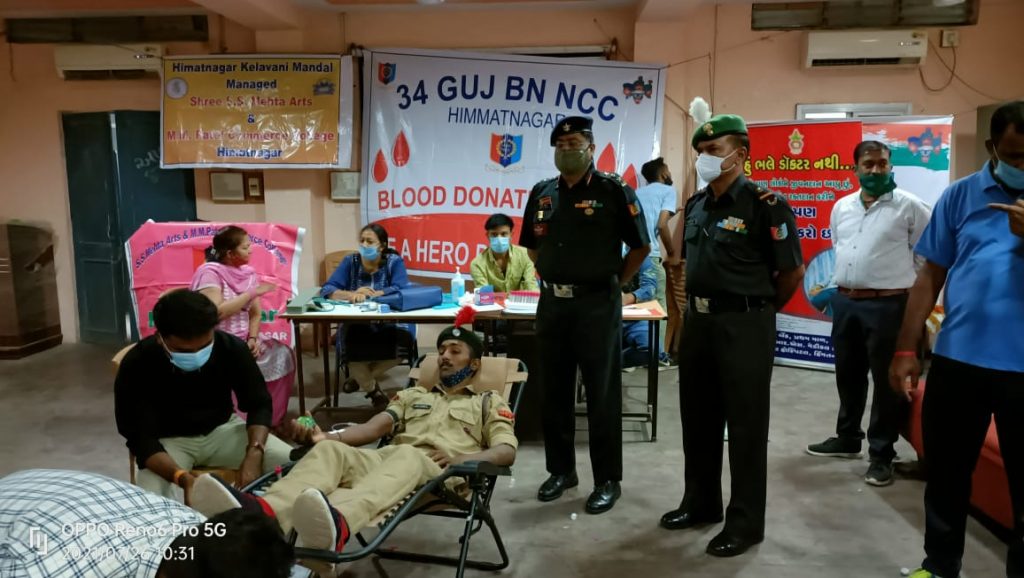 Blood donation camp 34 GUJ BN NCC himatnagar