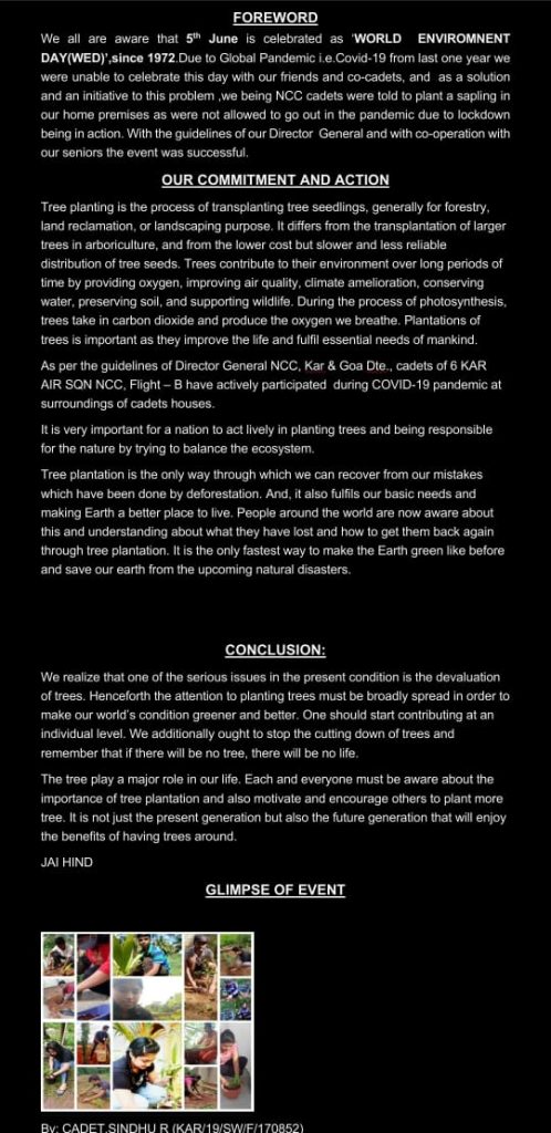 Cadet Sindhu R KAR/19/SW/F/170852 06 KAR AIR SQN NCC Mangalore Group KAR & GOA Dte Alvas Institute of Engineering and Technology