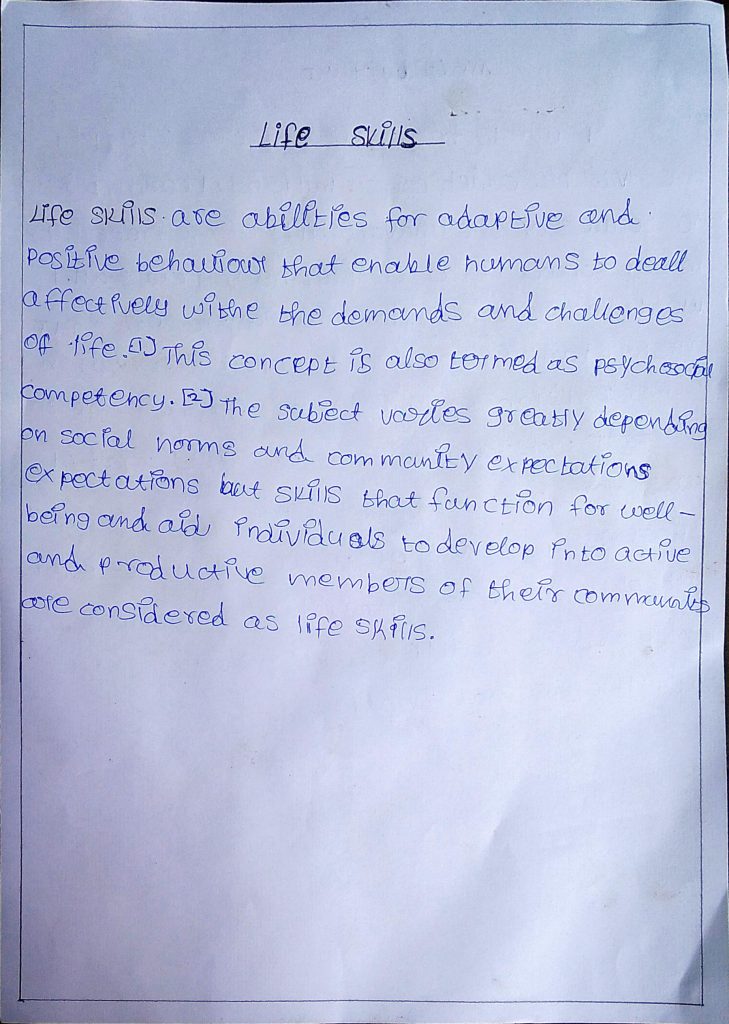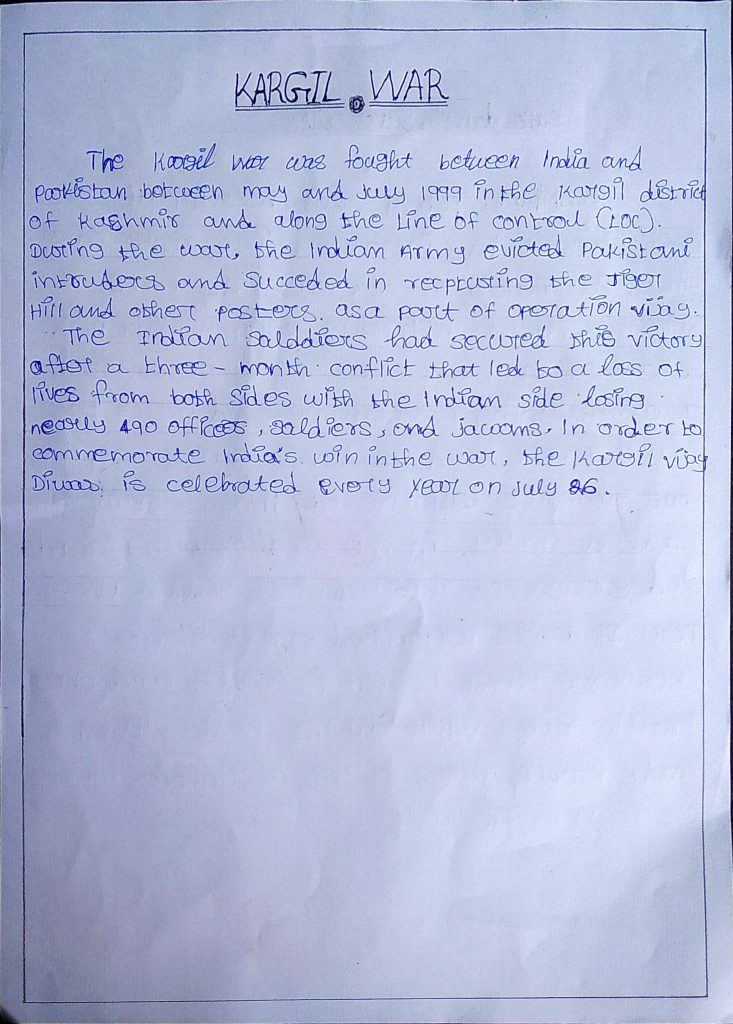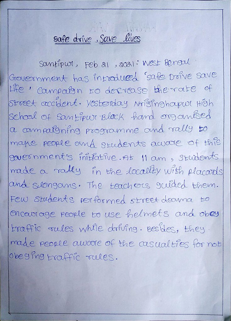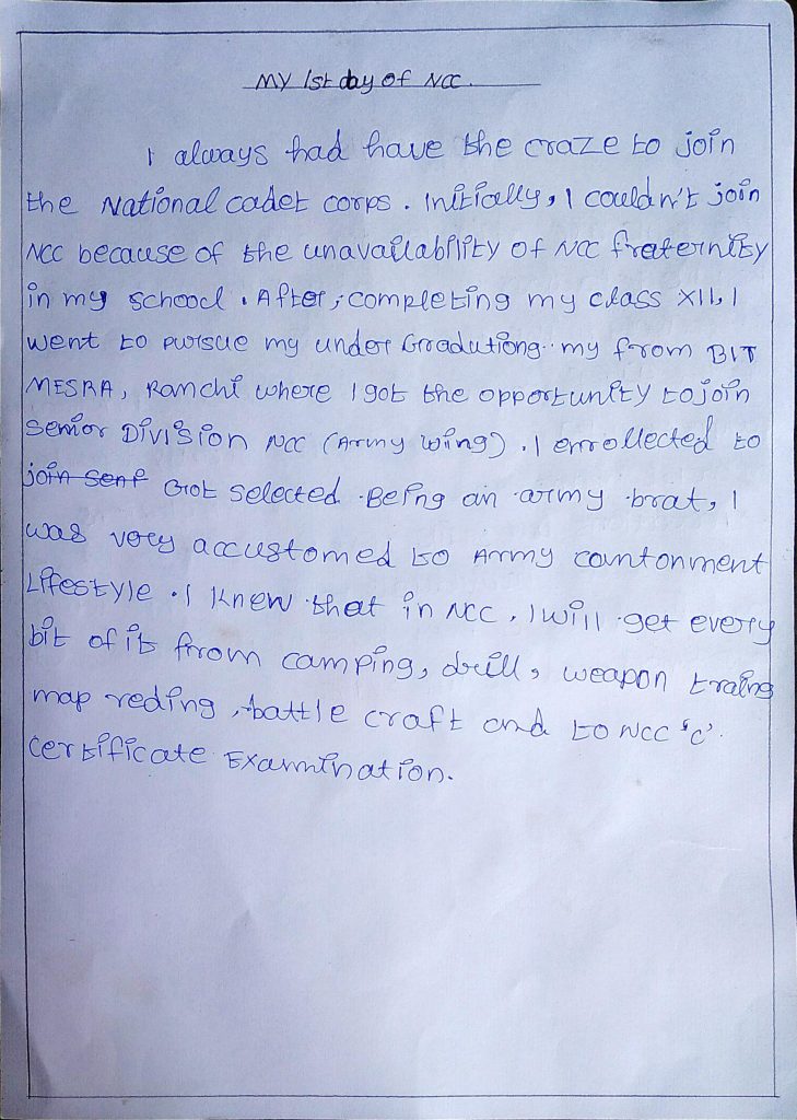 Safe drive,save lives,kargil war,my1st day of NCC,life skills.