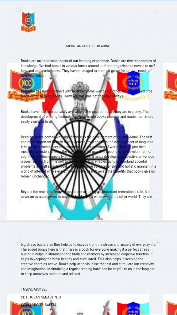 TN19SWA832021 CDT: SATHIYA S VC&RI NAMAKKAL 12 TN BN NCC KOVAI GROUP DTE-TN P&AN