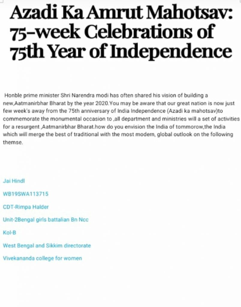 Regimental no. :- WB19SDA194125 Name :- Abdul Rahim khan College name :- T.DB College Unit :- 10 Bengal battalion NCC, Asansol Group :- Burdwan Directorate :- West Bengal and sikkim