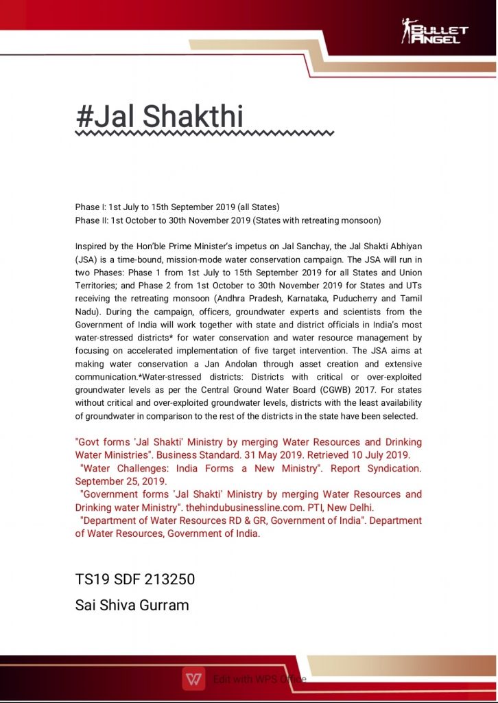Jal Shakti is a campign for water conservation and water security in the country