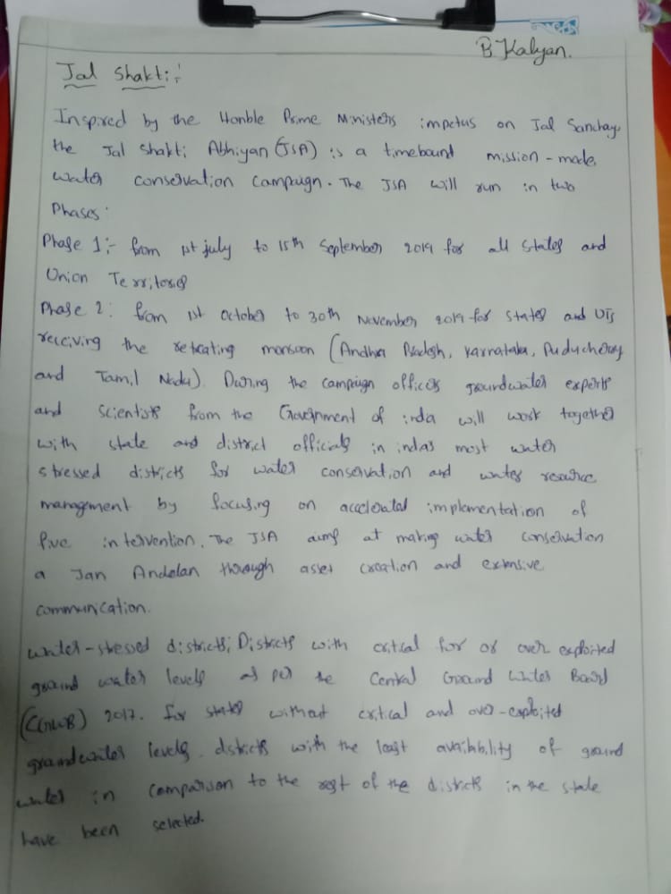 Jal Shakthi aims at making water conservation a Jan andholan through asset creation and extensive communication.