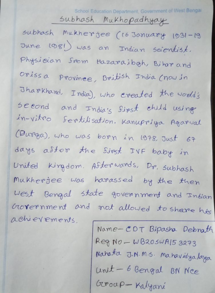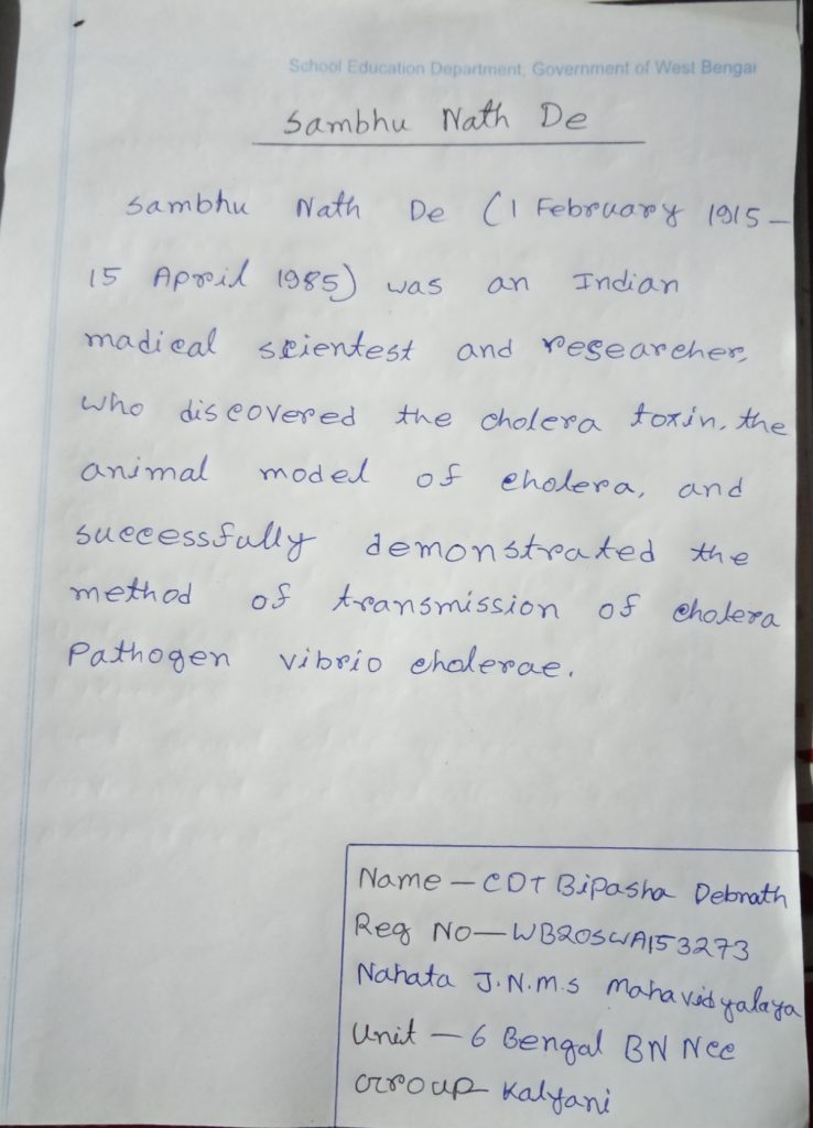 CDT Bipasha Debnath WB20SWA153273 Nahata j.n.m.s mahavidyalay 6 Bengal BN Ncc Kalyani