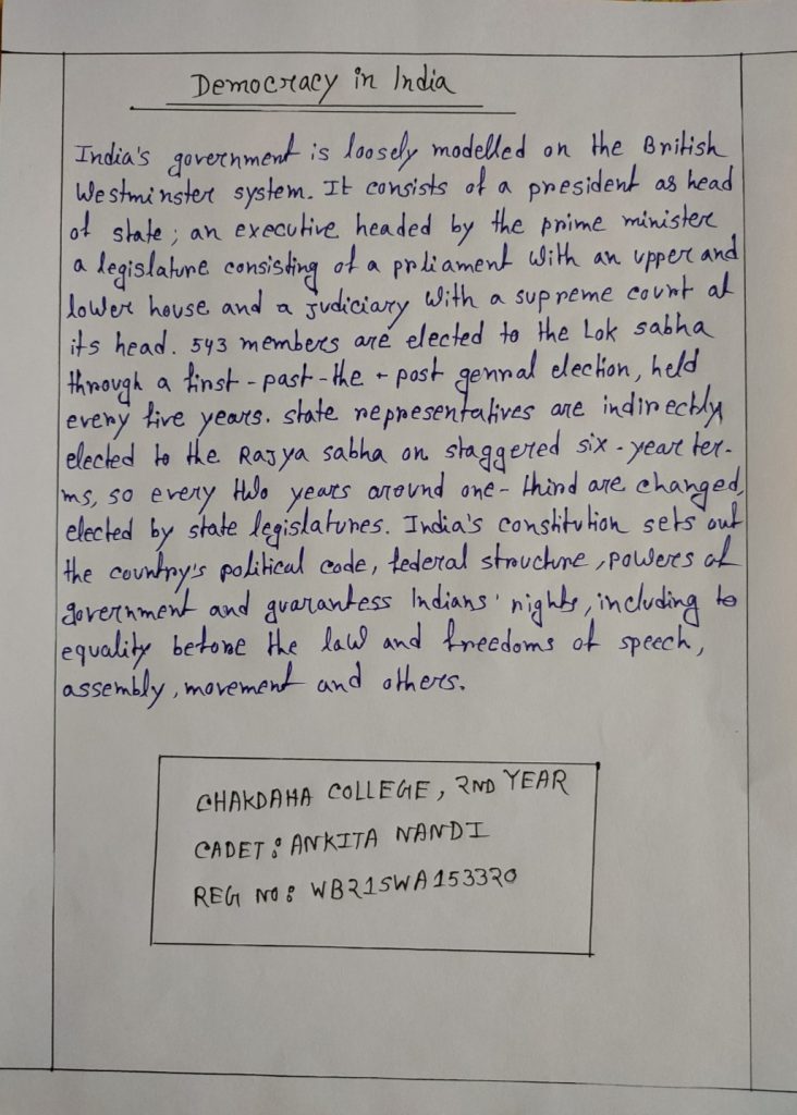 I am Ankita Nandi, Reg Number: WB21SWA153320, writing about Democracy in India.
