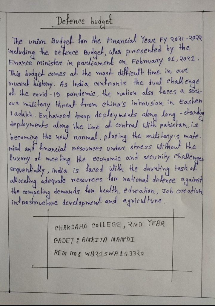 I am Ankita Nandi, Reg Number: WB21SWA153320, writing about defense budget.