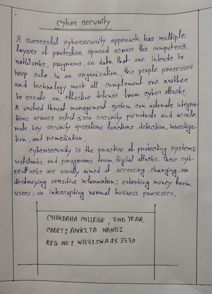 I am Ankita Nandi, Reg Number: WB21SWA153320, writing about Cyber security.