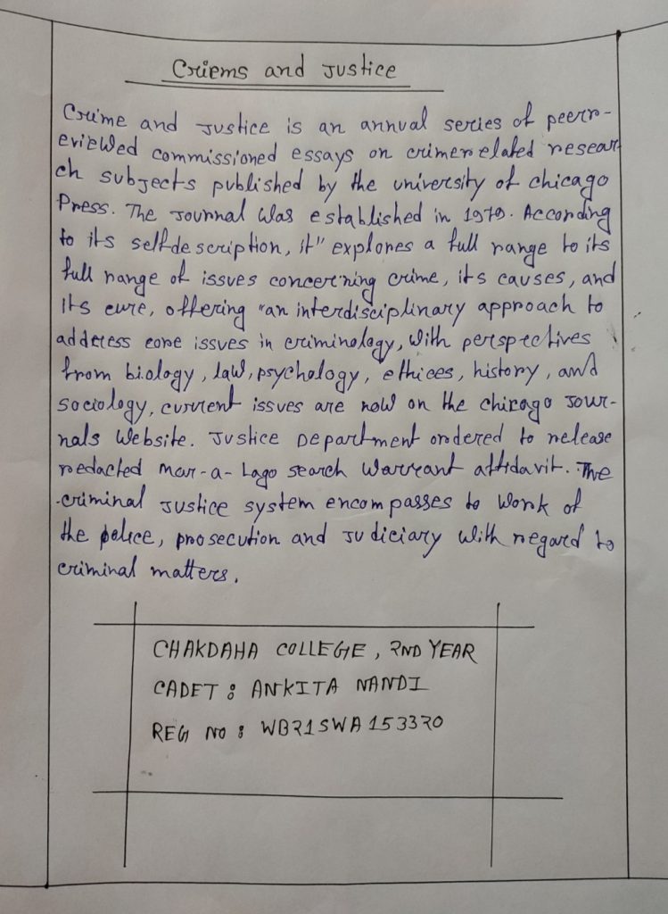 I am Ankita Nandi, Reg Number: WB21SWA153320, writing about Crimes and Justice.
