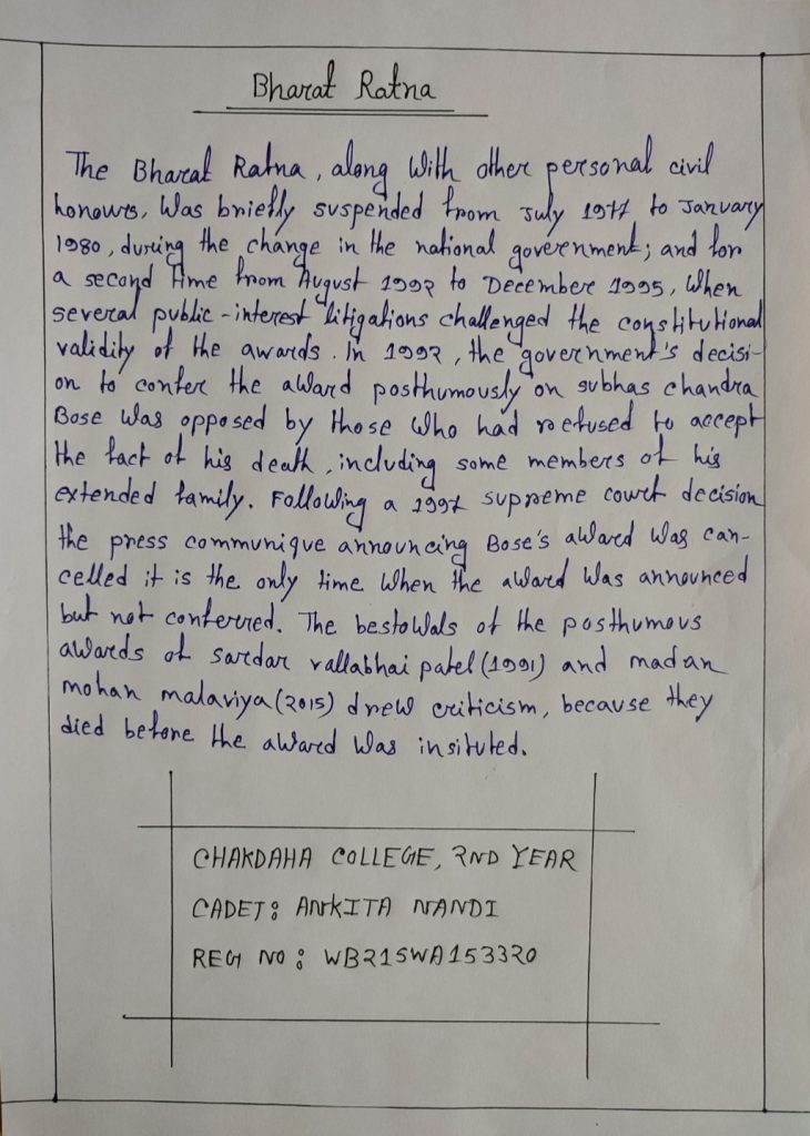 I am Ankita Nandi, Reg Number: WB21SWA153320, writing about Bharat Ratna.