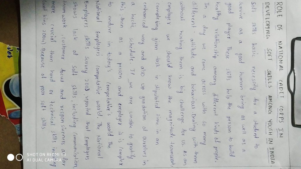 Skill development is basic necessary for an NCC Càdet. Lack of soft skills like communication team work etc.