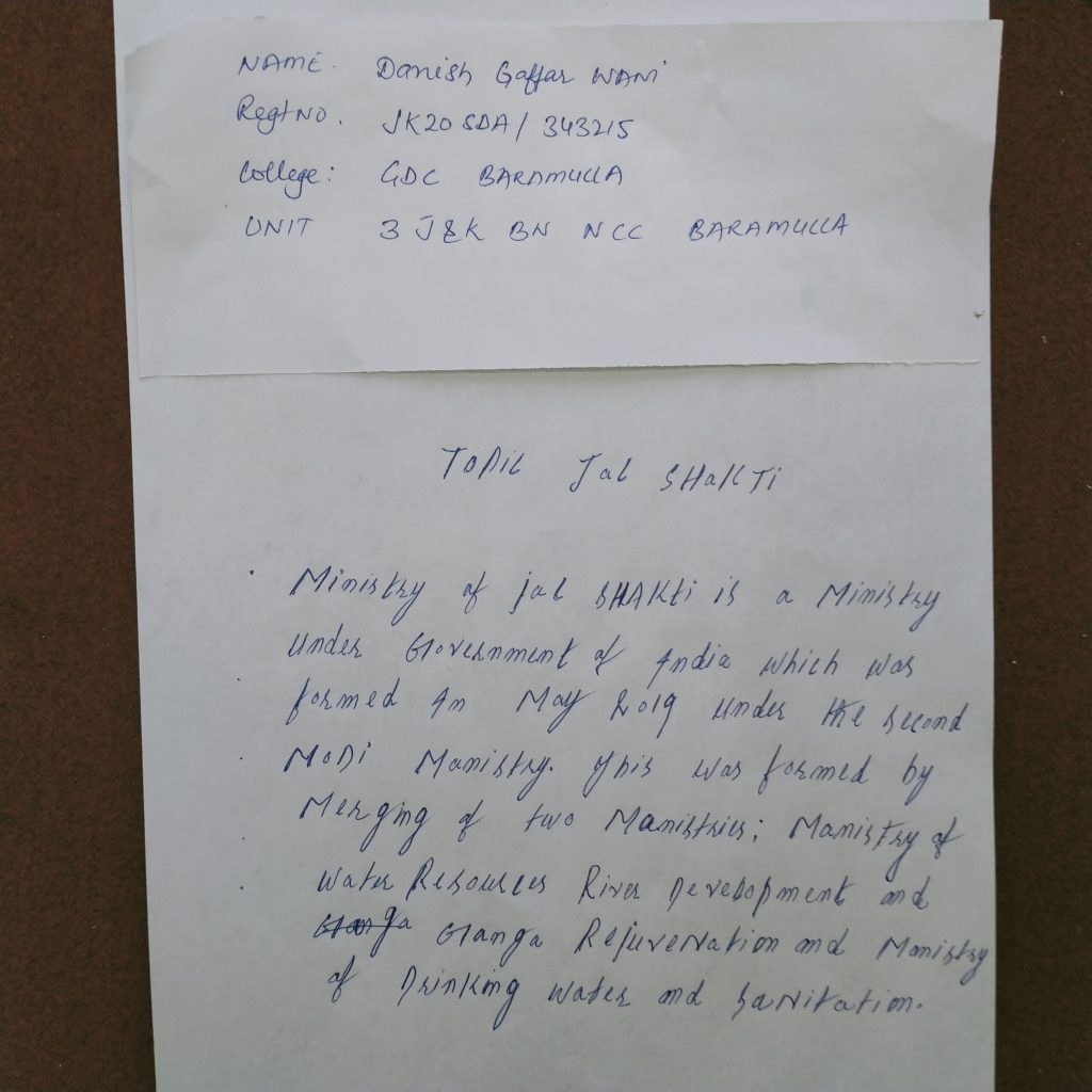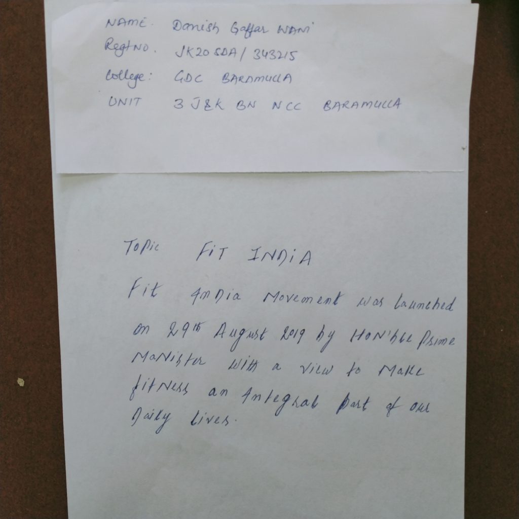Danish gaffar wani Reg no jk20SDA/343215 College GDC baramulla Unit 3 j&k BN NCC baramulla