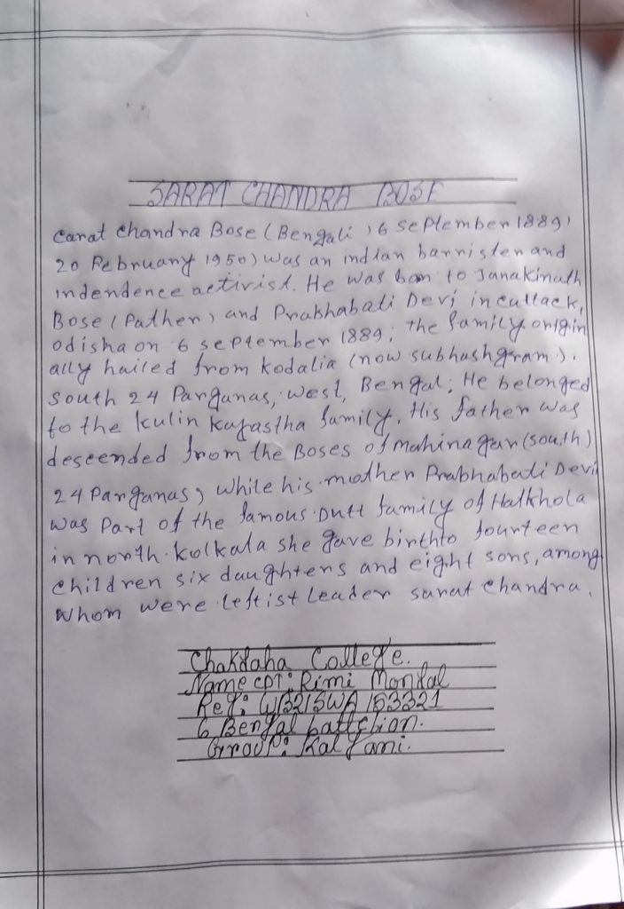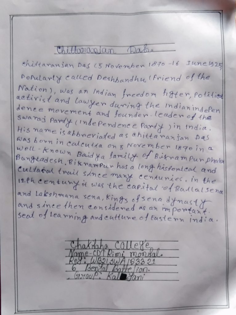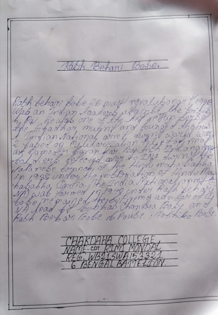 NAME-CDT RIMI MONDAL REG-WB21SWA153321 CHAKDAHA COLLEGE 6 BENGAL BATTALION