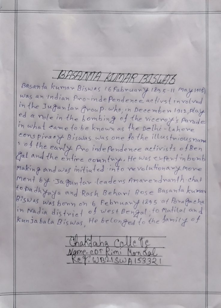 CDT - RIMPA SARDAR REG NO - WB21SWA153313 CHAKDAHA COLLEGE