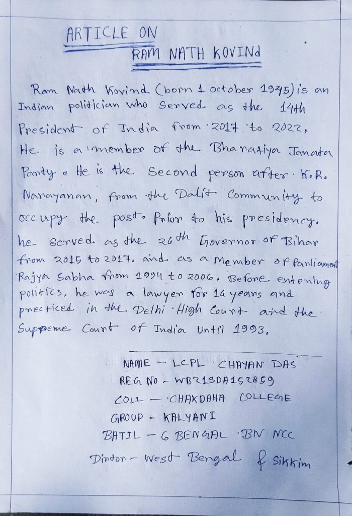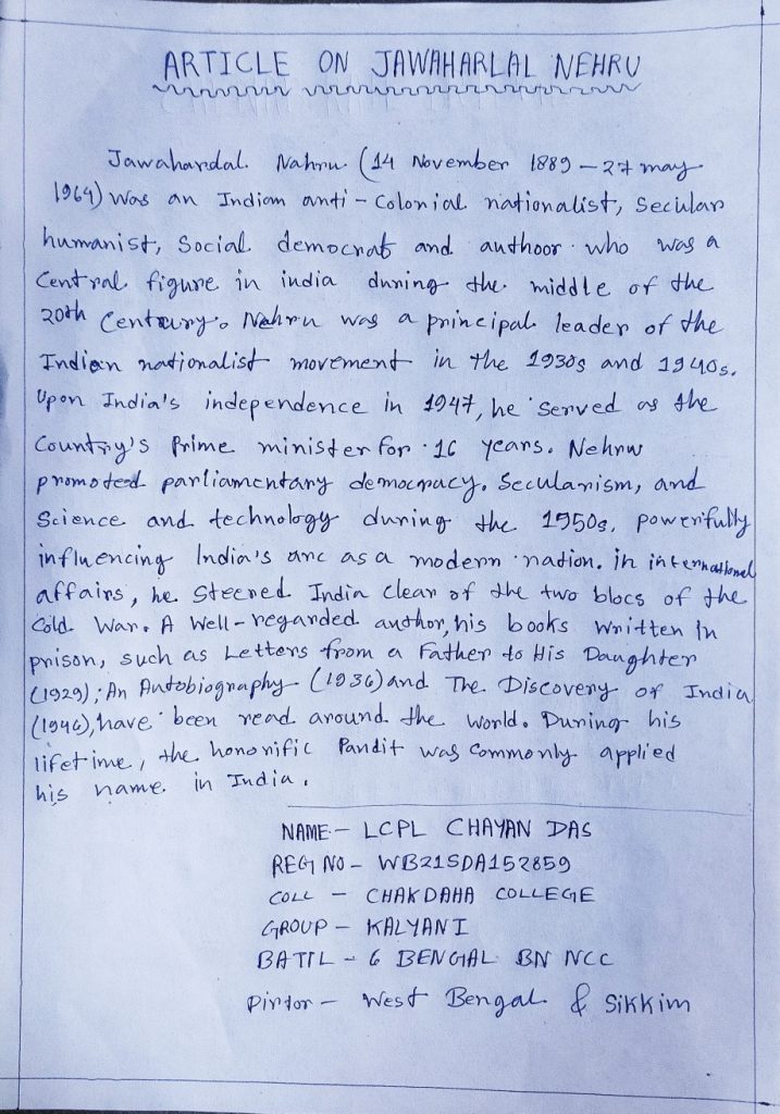 NAME- CHAYAN DAS, RANK- LCPL, REG.NO-WB21SDA152859, CHAKDAHA COLLEGE,6 BENGAL BN NCC, WB&SIK