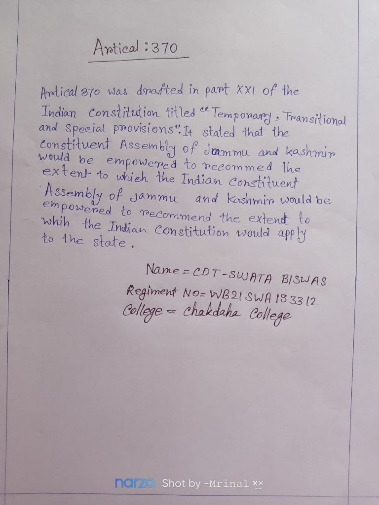 CDT ADITYA SASHA WB21SDA152507 DB COLLEGE 6 BENGAL BN NCC