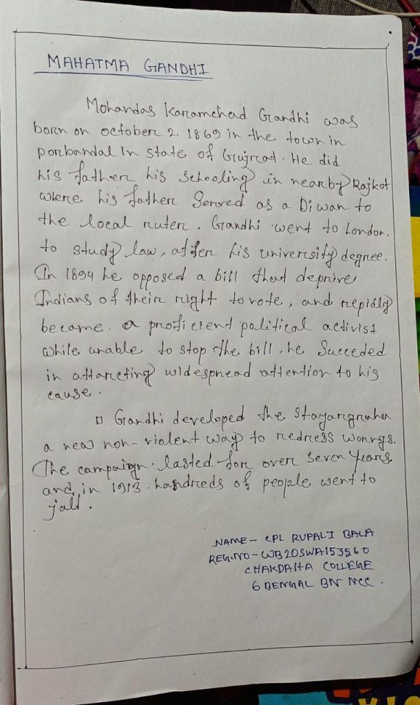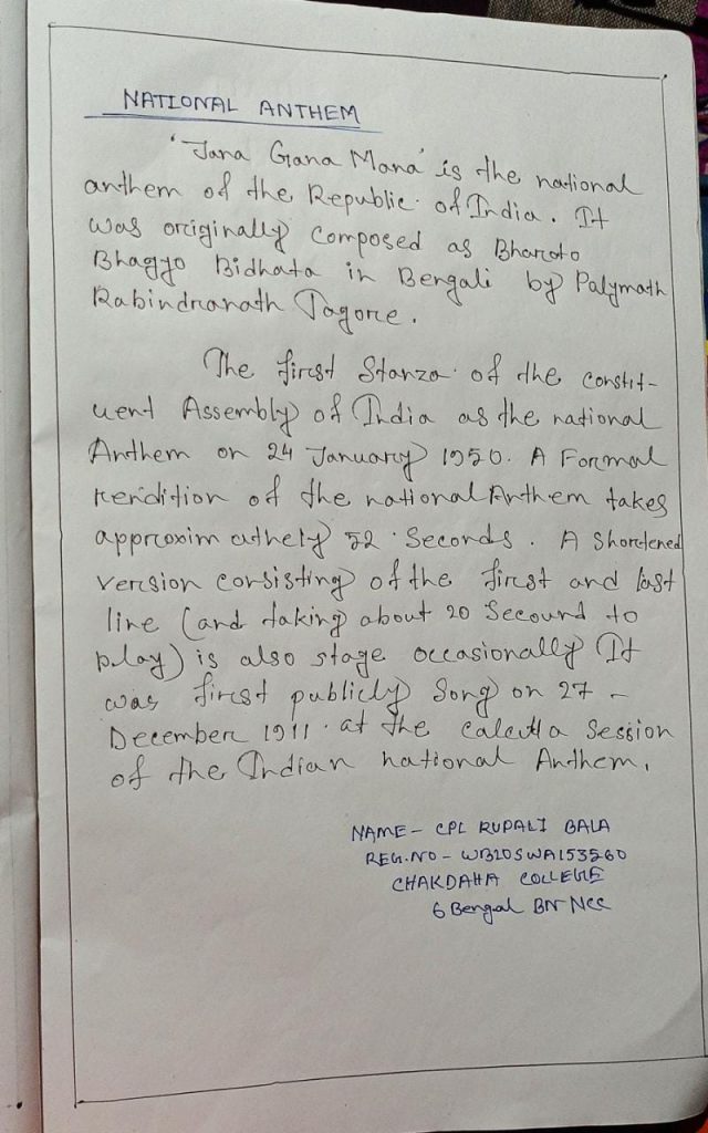I am CPL Rupali Bala from Chakdah College NCC Unit 6 Bengal Battalion NCC Kalyani group DCT WB & Sikkim