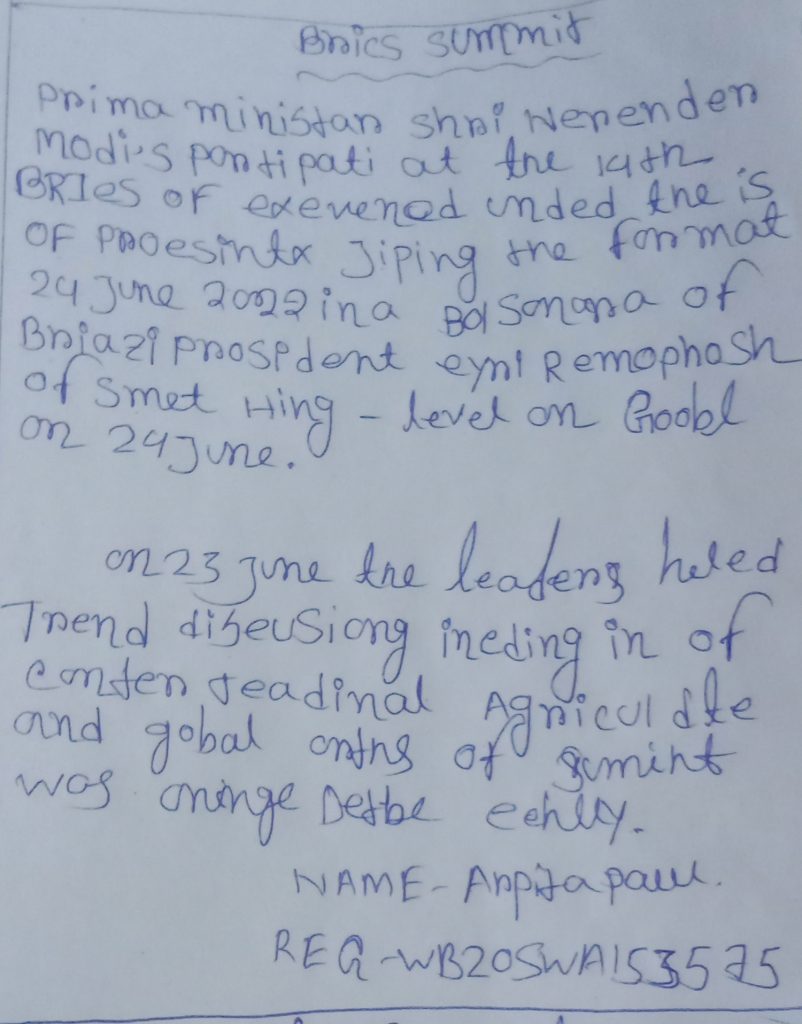 (Good evening l am cadet Arpita Paul kalyani group West Bengal sikkim director Brics summit.)