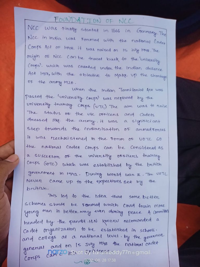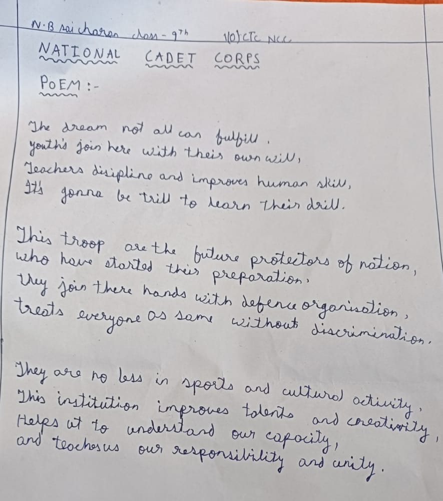 N.TARUN REDDY REGIMENT NO-OD/20/SD/A/313314 UNIT -1 (ODISHA)CTC NCC UCPES BERHAMPUR