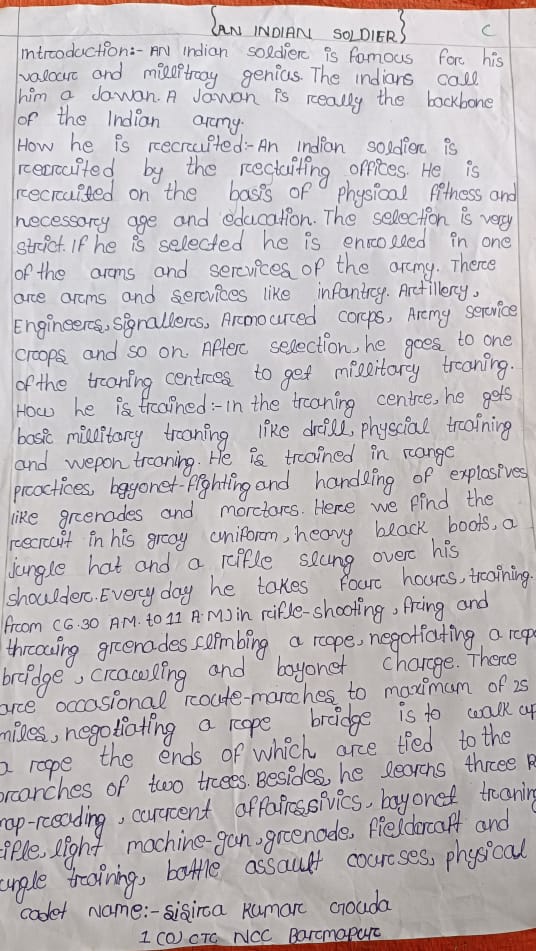 Name - Sekhar Kumar sahu 1(o)CTC ncc berhampur Group- Berhampur