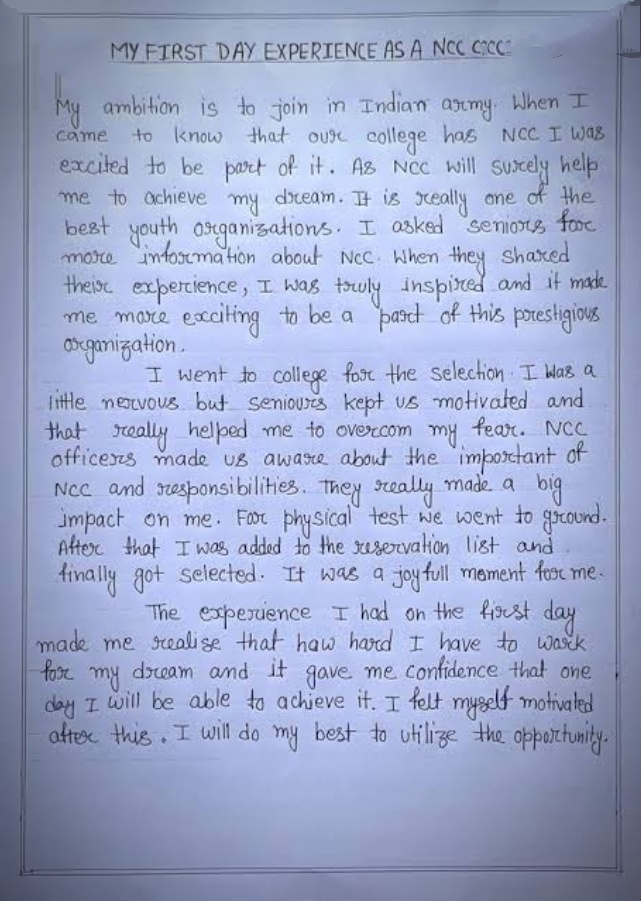 It was a wonderful experience on the first of my ncc. I was waiting for this day since my childhood. I was so much excited.