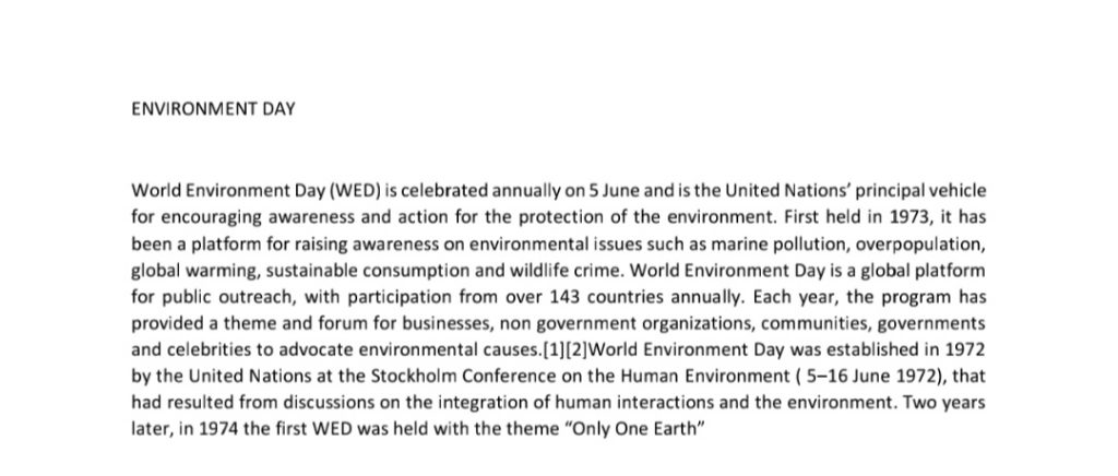 WORLD ENVIROMENT DAY