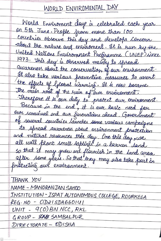 MANORANJAN SAHOO OD21SDA660141 ISPAT AUTO COLLEGE, ROURKELA 9(O) BN NCC RKL