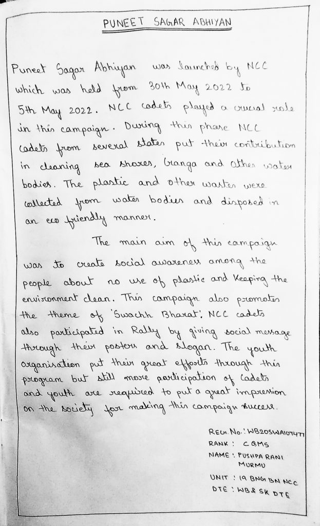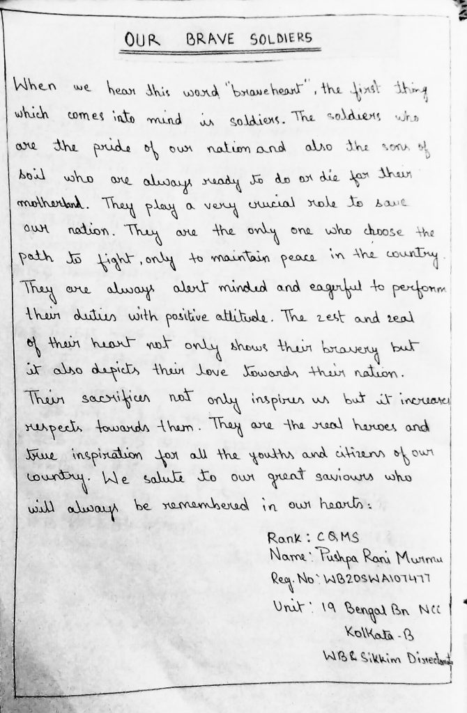 I am CQMS Pushpa Rani Murmu from 19 Bng BN NCC, WB and SK Dte.