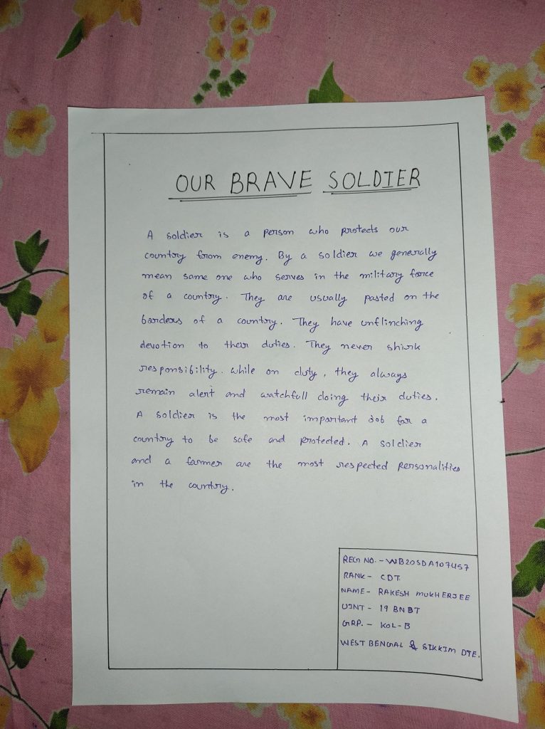 REG. No. - WB20SDA107457 RANK - CDT NAME - RAKESH MUKHERJEE UNIT - 19 BN BT GRP. - KOL-B WEST BENGAL & SIKKIM DTE
