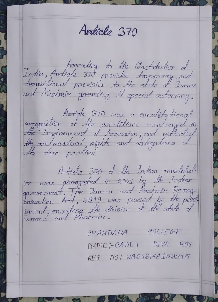 WB20SDA153515; CDT RUDRA HALDER, CHAKDA COLLEGE, UNDER 6 BENGAL BATTALION