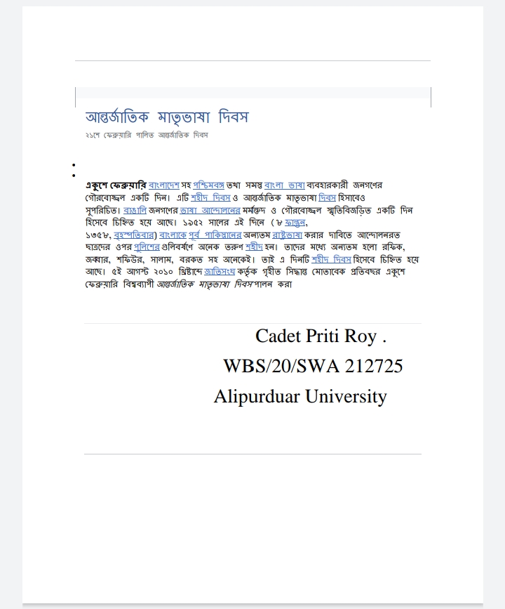 NCC CADET - PIPASA ROY REGT NO - WB21SWA153317 6 BENGAL BATTALION
