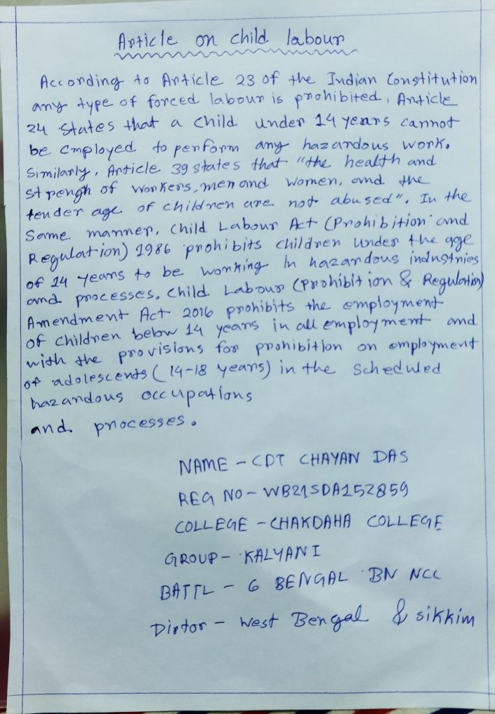 NAME-CADET CHAYAN DAS, REG.NO-WB21SDA152859, CHAKDAHA COLLEGE,6 BENGAL BN NCC, WB&SIK