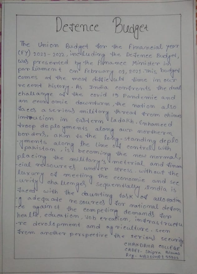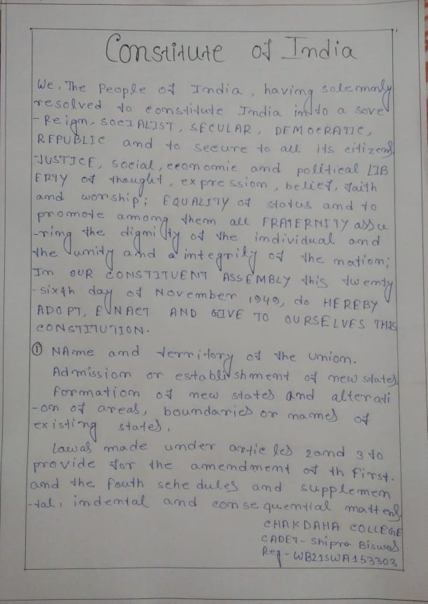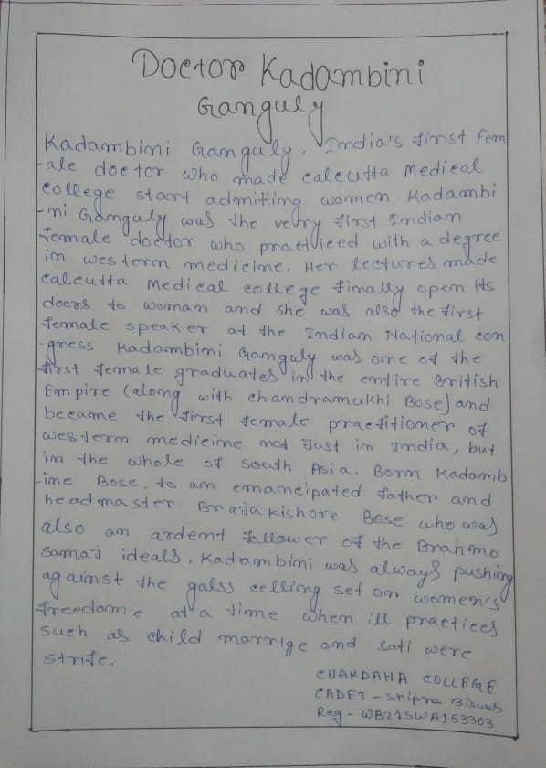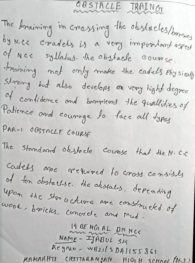 NAME - BIJAY ROY REG.NO. - WB21SDA153669 UNIT - 6 BENGAL BN NCC GROUP - KALYANI DIRECTORE - WB & SIKKIM DIRECTORATE INST.- NAHATA J.N.M.S. MAHAVIDYALAYA