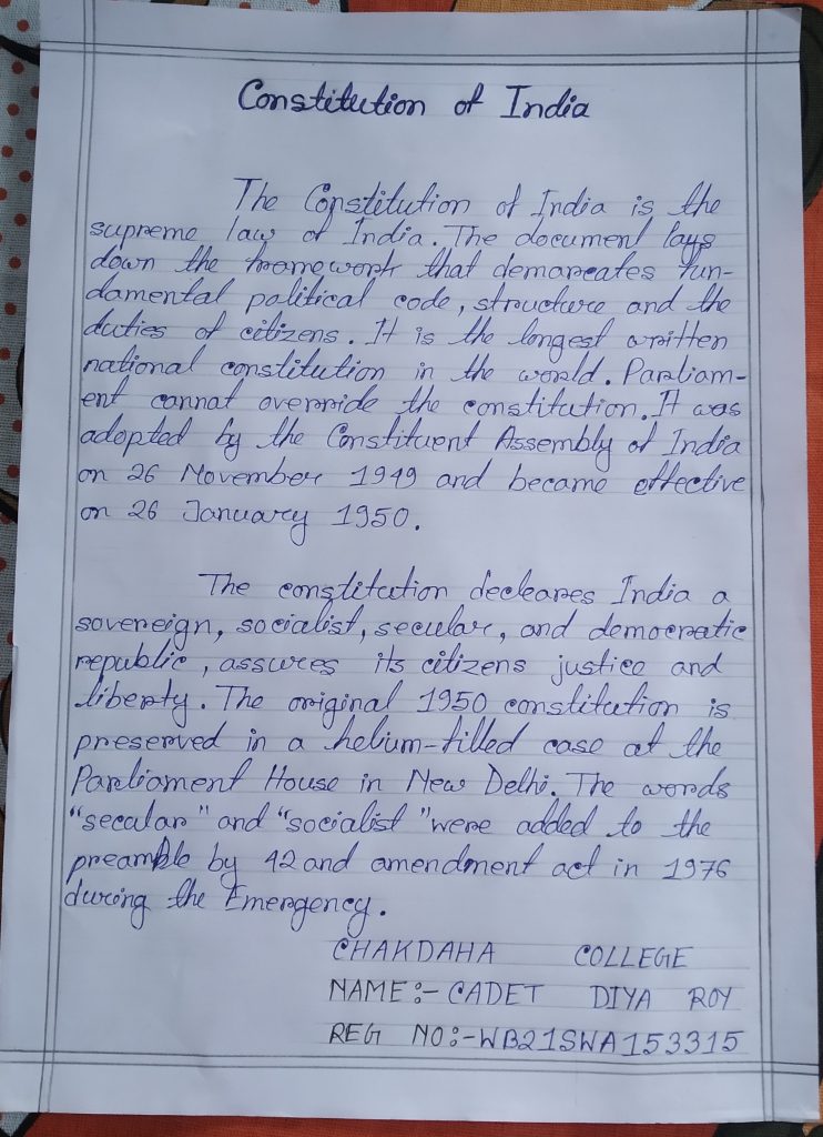 Rank- Cadet Name-Priyanka saha Regimental No- WB21SWA103359