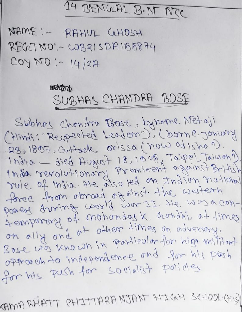 Nilay Mondal, SAKTIPUR KMC INSTITUTION, 14 BENGAL BN NCC