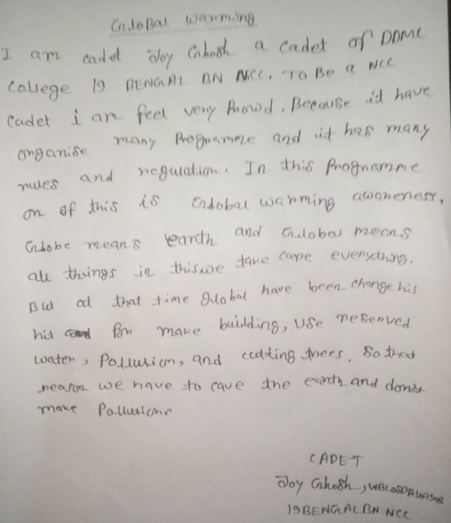 Cadet -Joy Ghosh wb20sda107903 Ddmc 19bengal bn ncc