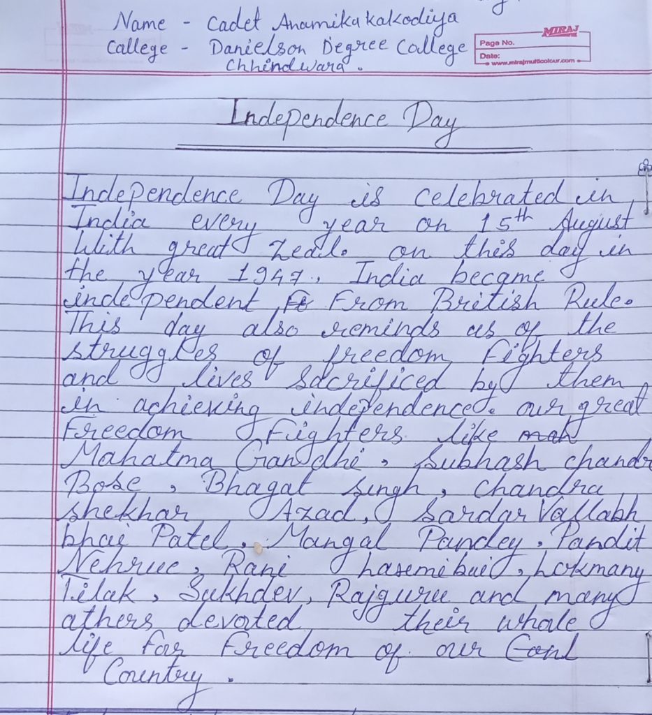Artical on 75 Years of independence & way forward by WB21SWA214516 cdt Kirti Yadav from Suryasen mahavidyalaya 16 BENGAL BN NCC, Darjeeling & Sikkim Group, West Bengal & Sikkim Directorate