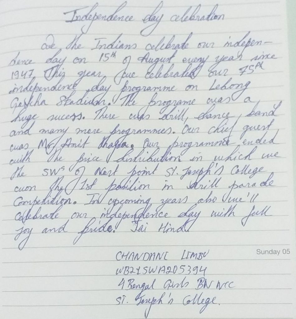 Name : cdt Rachaita Saha Regimental number: WB21SWA107507