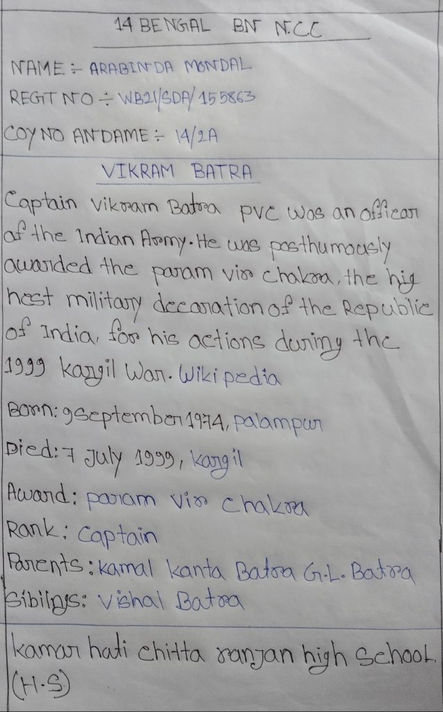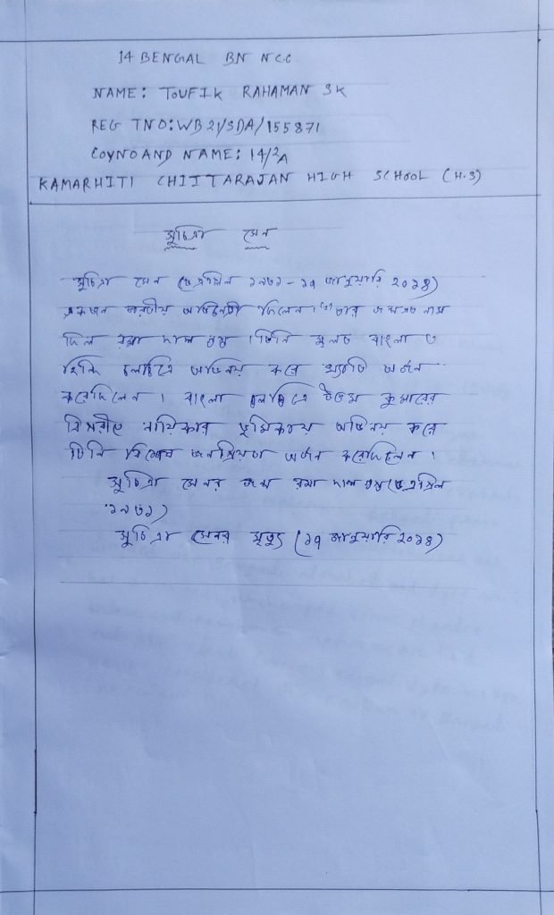 CADET :- Laxmi Sarkar UNIT :- 4BEN GIRL'S BN COLLEGE :- Munshi Premchand Mahavidyalaya