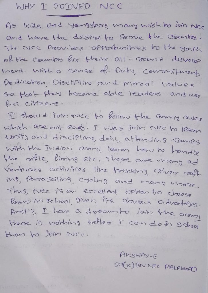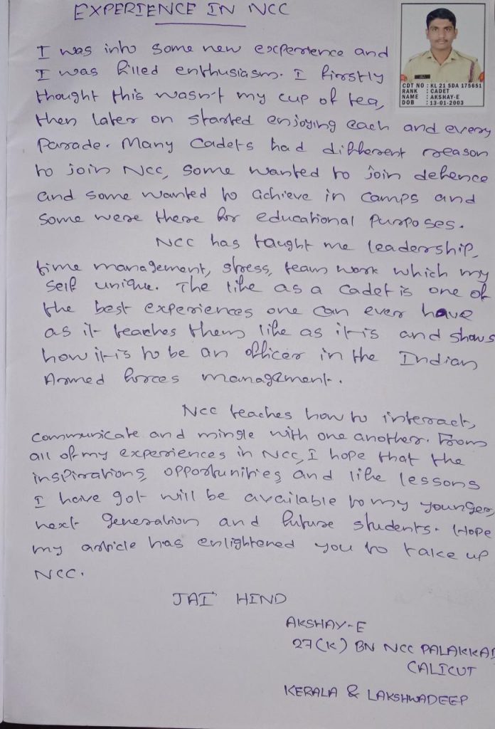 It is an article about my first day in NCC uniform.