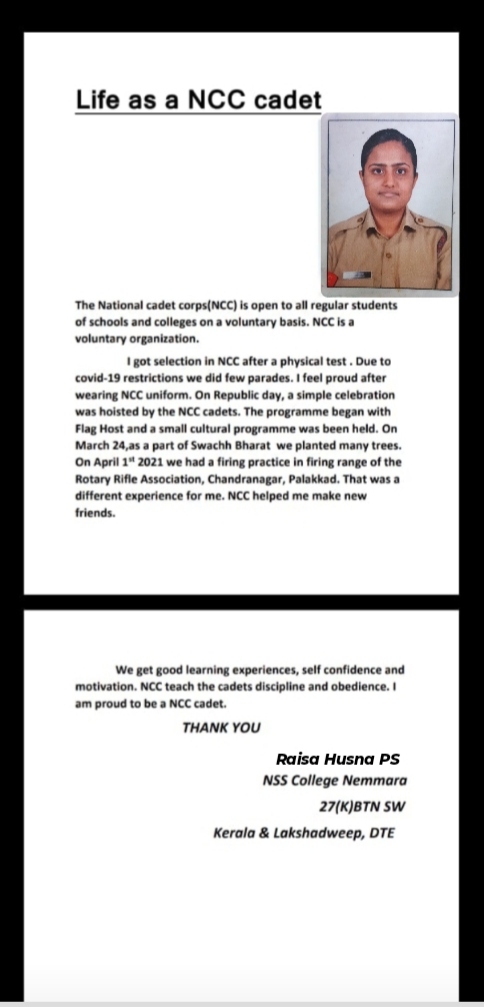 Iam Cadet Raisa Husna PS From kerala and Lakshadweep Directorate, Calicut Group